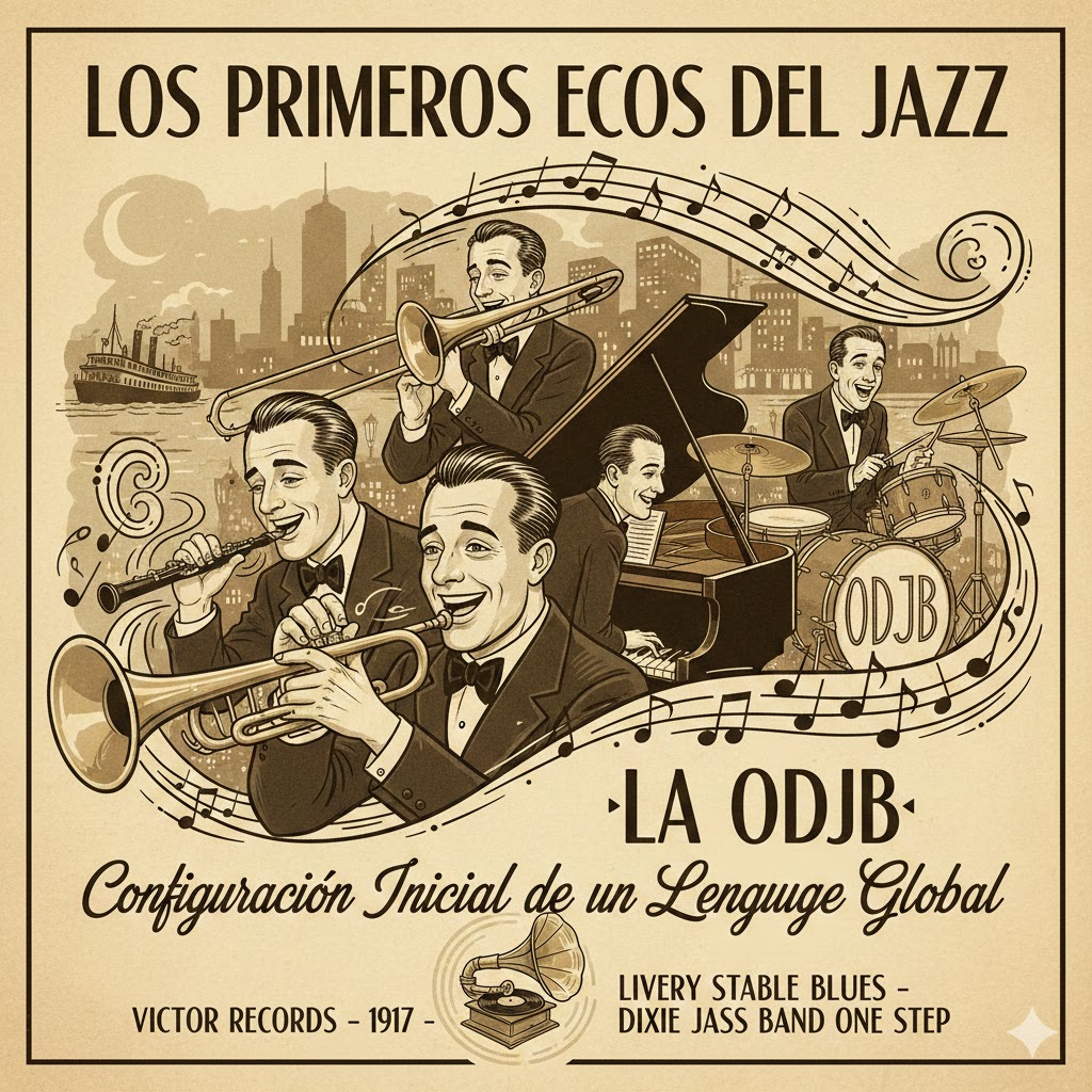 El primer impacto público del jazz no se produjo a través de sus registros fonográficos, sino mediante la repercusión que generó en la prensa escrita. La Original Dixieland Jass Band —todavía con la grafía temprana del término— despertó, desde 1917, una combinación de rechazo, curiosidad y fascinación que contribuyó de manera decisiva a consolidar la idea de un nuevo género musical. Este clima mediático facilitó que la agrupación se convirtiera en la primera banda de jazz en presentarse fuera de los Estados Unidos, con un prolongado ciclo de actuaciones en Inglaterra que anticipó la expansión internacional del estilo.