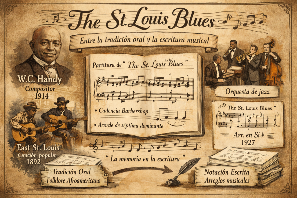 En definitiva, “The St. Louis Blues” no es solo una composición emblemática: es un documento. En ella conviven la memoria de una tradición oral, la intervención consciente del compositor y las huellas de un proceso de institucionalización musical. Entenderla en estos términos permite no solo analizar su estructura, sino también comprender el modo en que el jazz comienza a definirse como lenguaje.