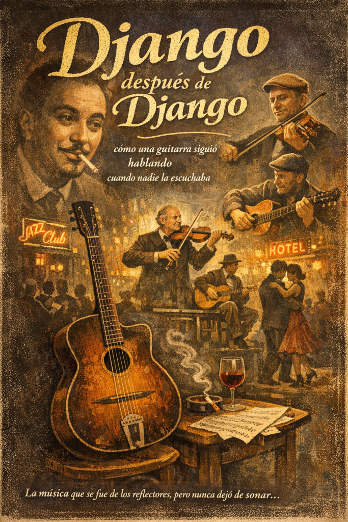 En la historia del jazz hay momentos en los que una música deja de estar de moda, pero no por eso deja de existir. Simplemente se corre del centro, se vuelve menos visible, más íntima. Algo así ocurrió con el mundo que había creado Django Reinhardt.